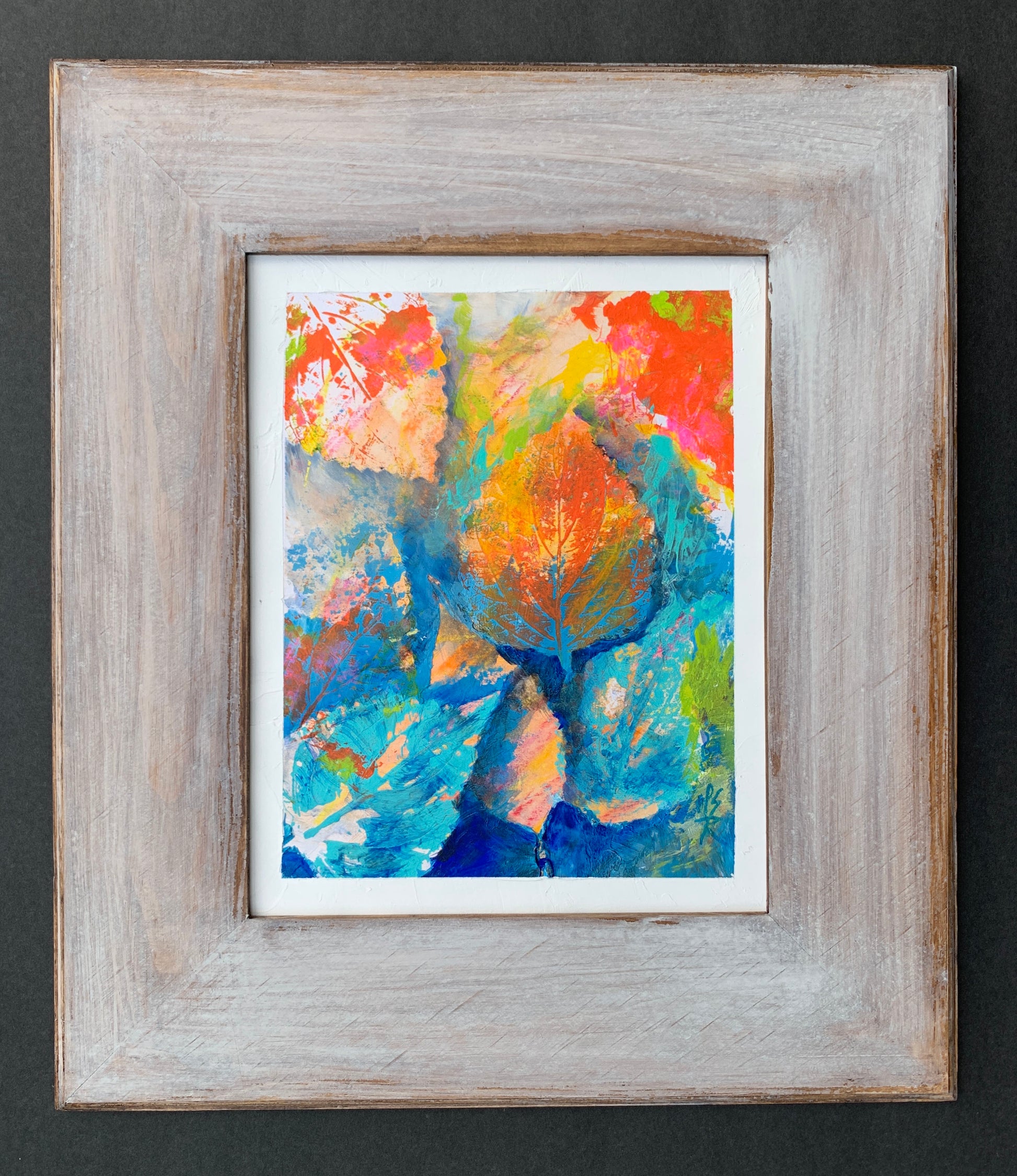 Watermelon captures the essence of coastal calm through mixed-media artistry. Hand-painted on paper with vibrant red-orange, blue, and pink leaf motifs, each piece is sealed with protective wax to preserve its luminous finish and tactile depth. Part of our Anti-Stress Collection, this work invites contemplation and visual respite—ideal for creating a serene focal point in any room. A thoughtful choice for collectors seeking authentic, nature-inspired art. The whitewashed driftwood frame complements the organic composition, bringing warmth and authenticity to any interior.